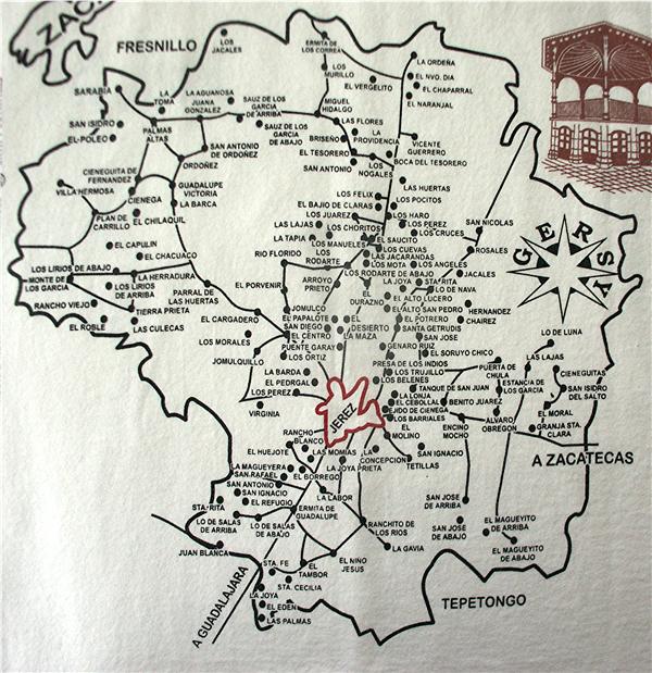 Map of district of Jerez Zacatecas Mexico